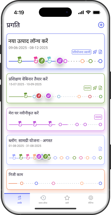 केवल चेकलिस्ट नहीं, वास्तविक स्थिति को समझें। परियोजना का मार्ग — एक सरल और बेहतर गैंट चार्ट — WinGo Plan में समय, किए गए काम और परिणाम को एक ही स्क्रीन पर जोड़ता है।