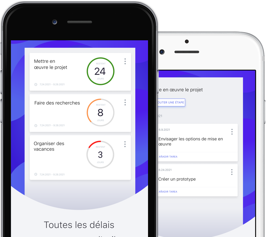 Sur l'écran Délais, suivez le temps qu'il reste avant l'achèvement de la prochaine étape et du projet dans son ensemble.