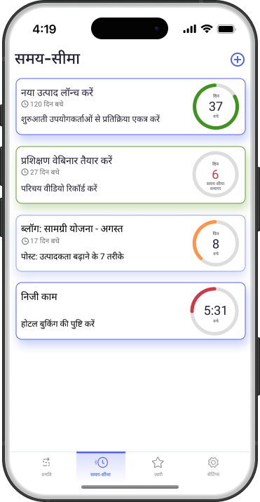हमने खेल 요소 जोड़े हैं ताकि आप टालमटोल से लड़ सकें और शुरू किया हुआ काम बीच में न छोड़ें।