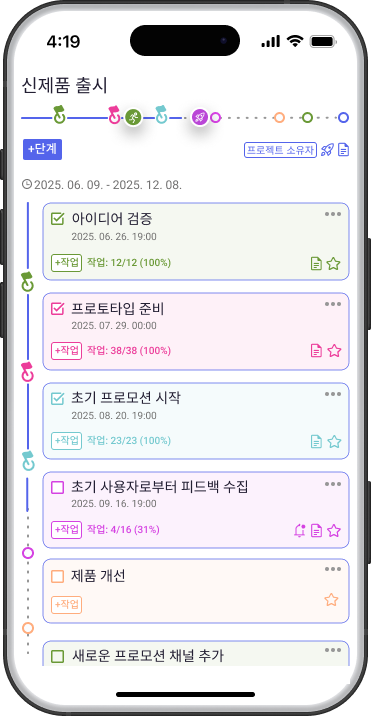 विचार से रिलीज़ तक का आपका स्पष्ट रोडमैप। पर्सनल और साइड प्रोजेक्ट्स को प्रबंधित करें, प्रगति ट्रैक करें और गेमिफिकेशन से प्रेरणा बनाए रखते हुए उत्पाद को अंत तक पहुंचाएं।