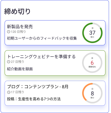 さまざまなビジネス分野のタスクを整理します。1つの画面で状況を監視し、リスクを評価し、どこが重要で何に最初に注意が必要かを即座に特定します。