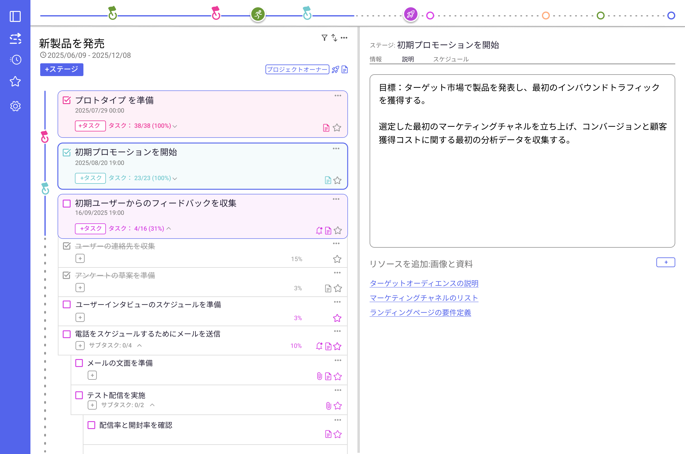 アイデアからリリースまでの視覚的なロードマップ。個人プロジェクトとサイド開発を管理し、進捗を追跡し、ゲーミフィケーションを使用してモチベーションを維持し、製品を完成させます。